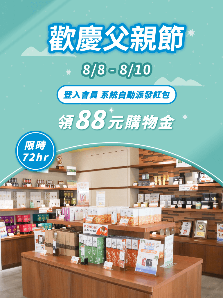1.登入會員系統自動派發「88元 父親節專屬購物金」。