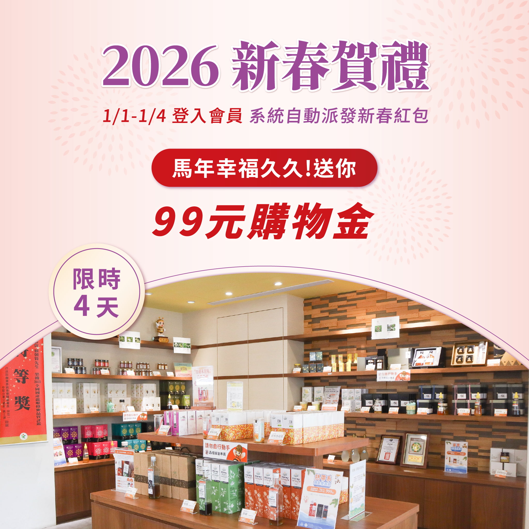 2026新春賀禮快閃活動-馬年幸福久久,送你99元購物金