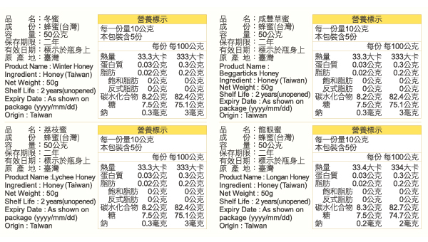 ★ 蜂蜜禮盒。 ★ 內含4罐50g蜂蜜→龍眼蜜+荔枝蜜+咸豐草蜜+冬蜜。 ★ 味蕾的旅行,一次品嚐四種不同的蜂蜜。 ★ 台灣國產蜂蜜。 ★ 100%純蜂蜜、無添加。 ★ 荔枝蜜/咸豐草蜜/冬蜜,易結晶。 ★ 禮盒內含展示木架。