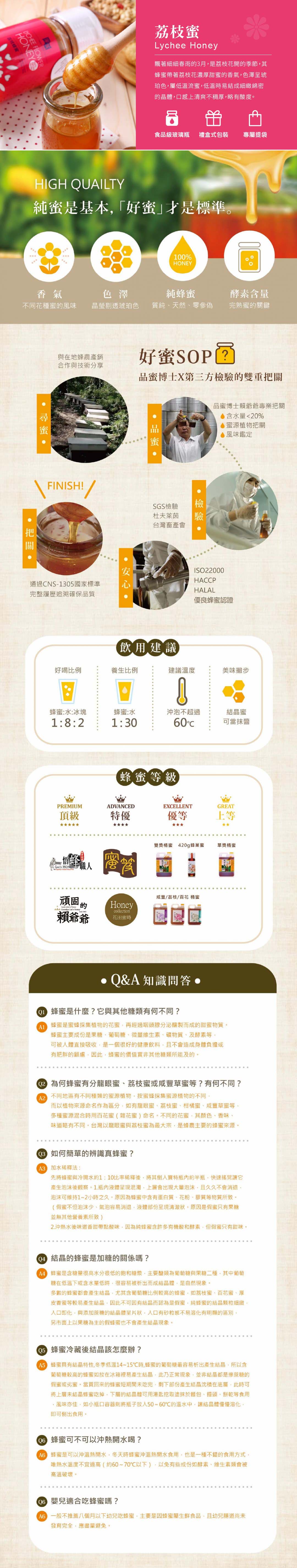 ●品名:蜜笈 荔枝蜂蜜《易結晶》●容量:700g/瓶●成分:蜂蜜(台灣)●原產地:台灣●保存期限:二年