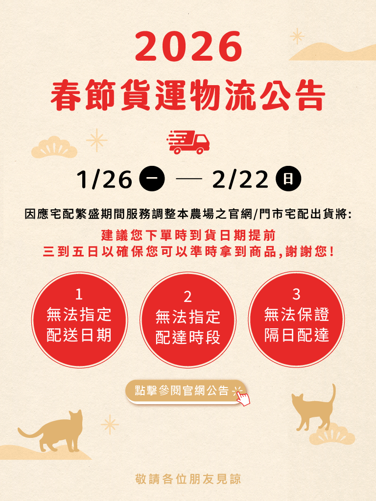 2026 春節物流公告 & 最後出貨日/暫停出貨日公告