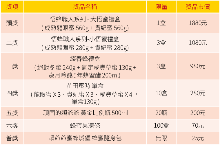 品一口甜活動獎項列表