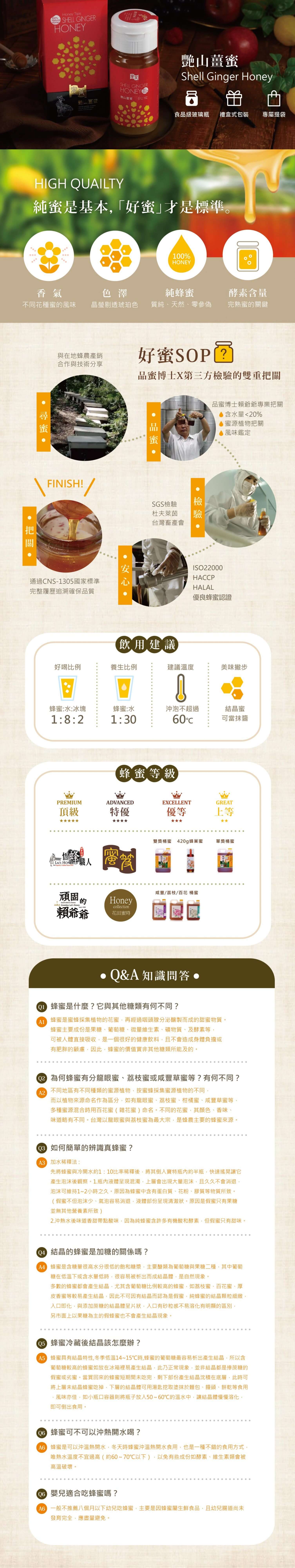 ●品名:蜜笈艷山薑蜜《易結晶》●容量:700g/瓶●成分:蜂蜜(台灣)●原產地:台灣●保存期限:二年